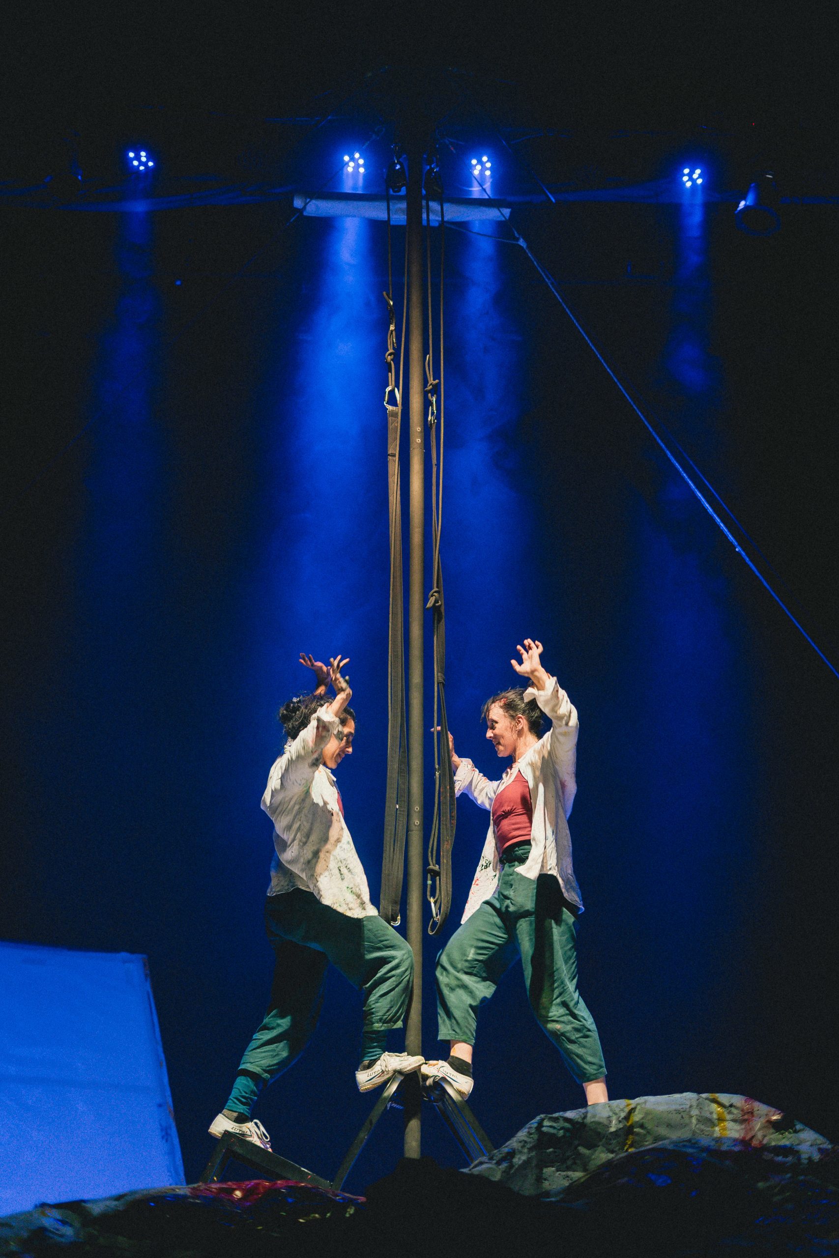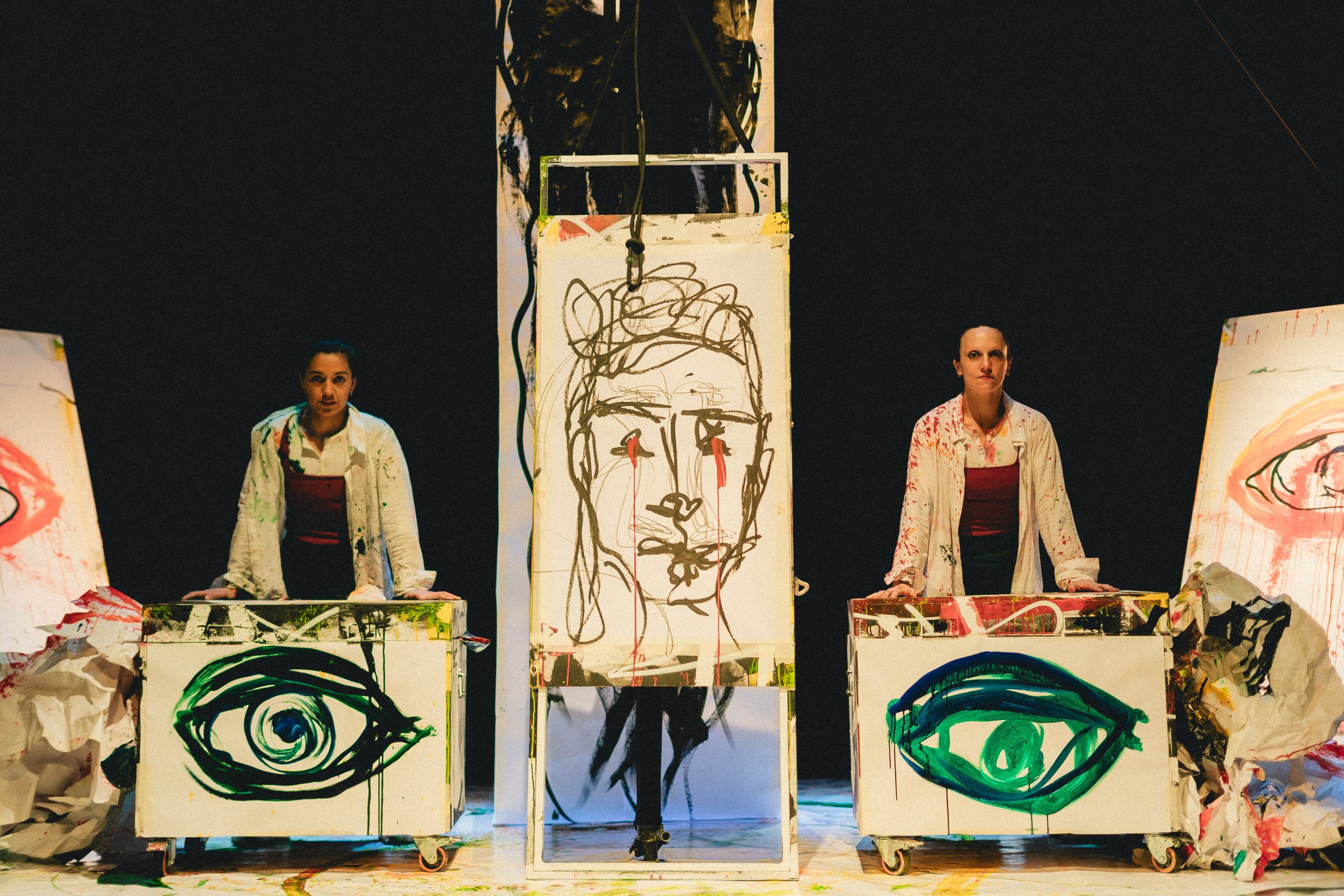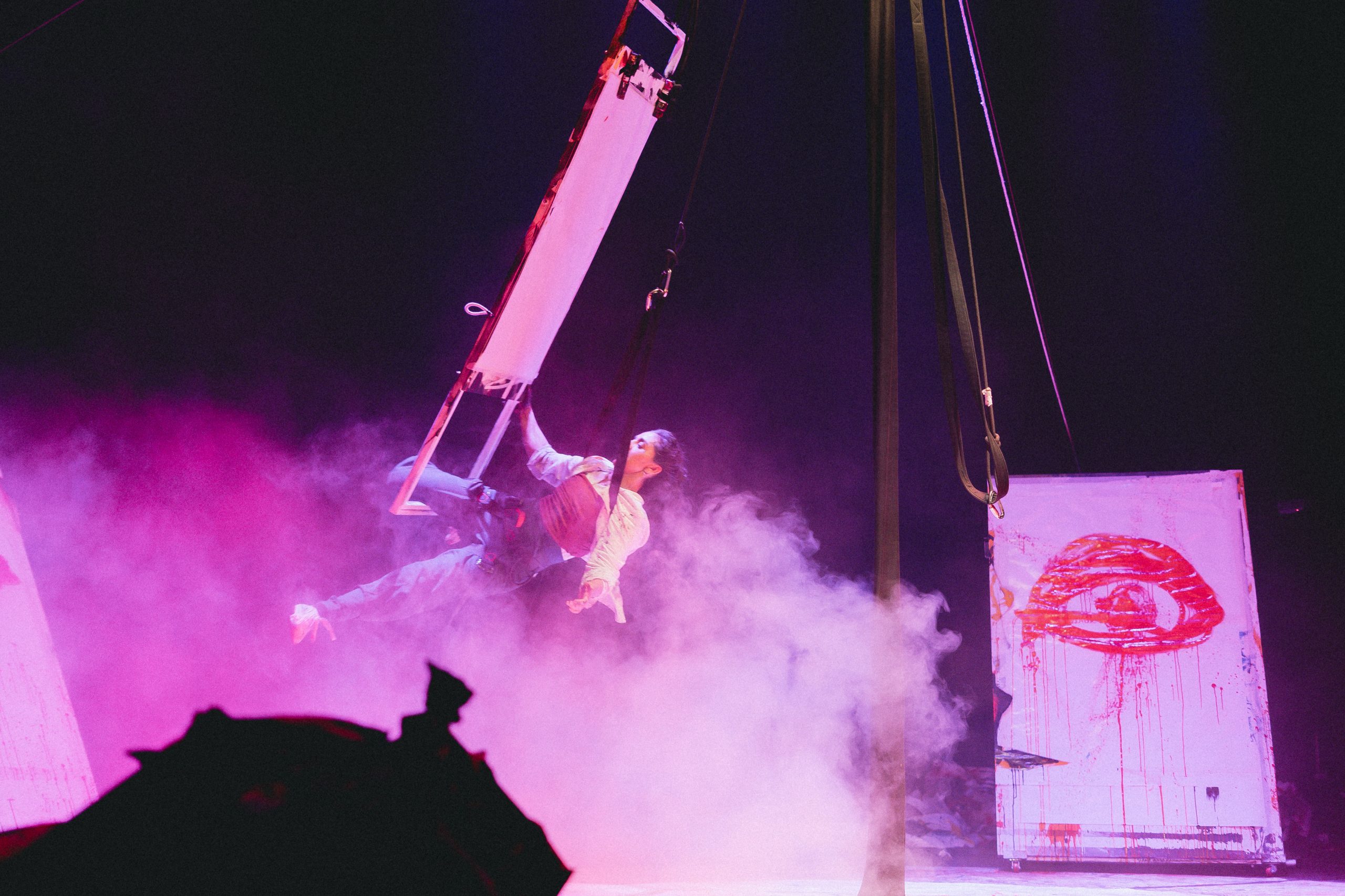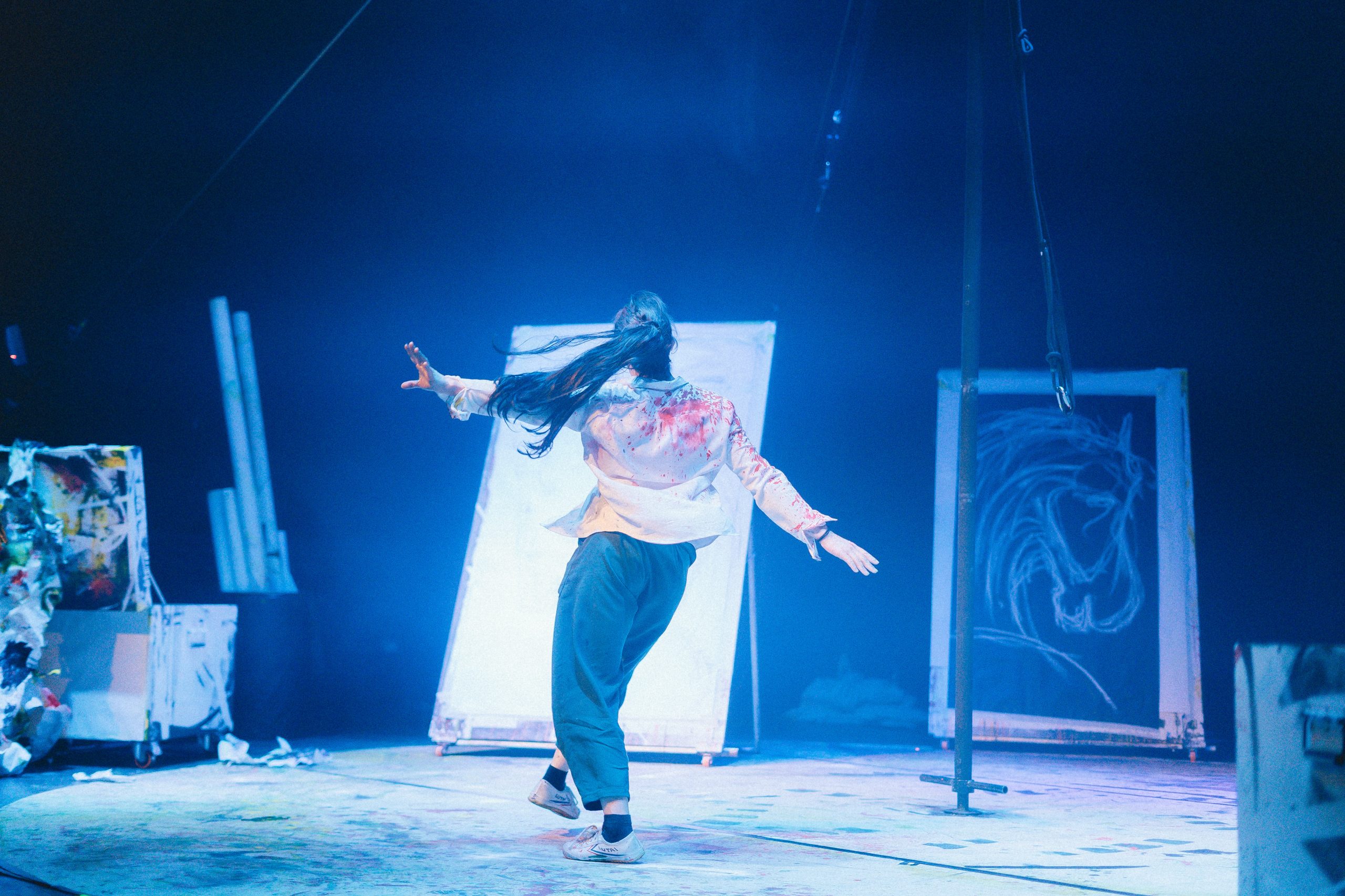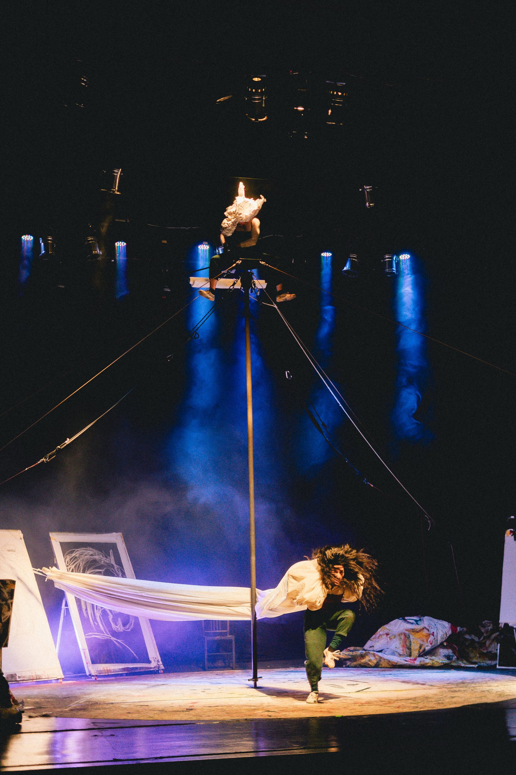 A través de un lenguaje poético y visual, la propuesta entrelaza circo contemporáneo, teatro, pintura y música, construyendo un espacio simbólico que respira con la intensidad del gesto y el cuerpo. En ese taller —real e imaginario a la vez—, la protagonista se sumerge en los pliegues de su mente y nos invita a observar ese instante suspendido entre lo real y lo soñado.